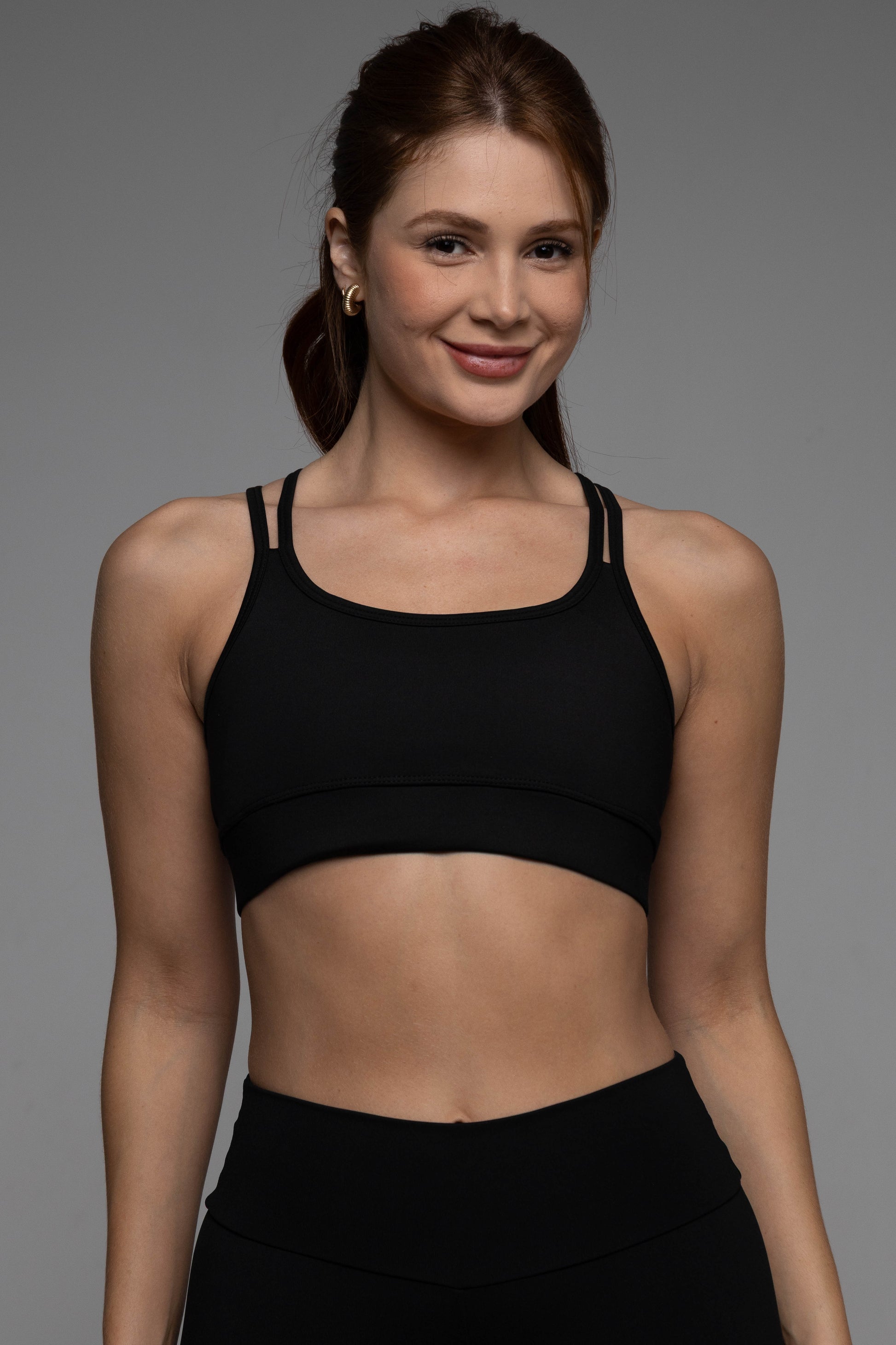 Este top combina compressão inteligente, conforto extremo e um design moderno pensado para entregar suporte seguro sem abrir mão da liberdade de movimento. As alças cruzadas nas costas garantem estabilidade e ajuste perfeito, enquanto o tecido de alta performance oferece excelente respirabilidade e rápida absorção do suor — mantendo você seca, leve e confortável durante todo o treino.